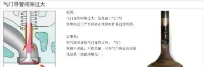 間隙過大,會使氣門升程不足,引起進氣不充分,排氣不徹底,并出現(xiàn)異響。