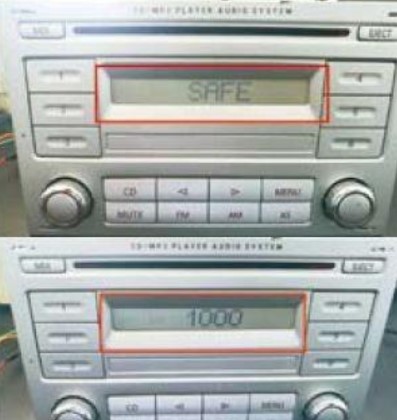 故障現(xiàn)象:車輛斷電或更換蓄電池后,CD音響鎖碼,屏幕顯示SAFE,音響無法播放,如圖1所示。