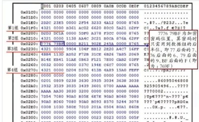故障診斷:從車上拆下C D 機(jī)并分解(如圖2所示),將電路板上95640存儲(chǔ)芯片焊下(如圖3所示),用編程器讀取數(shù)據(jù)并保存,從數(shù)據(jù)中找到4組4321 0000數(shù)據(jù),從上至下的第3組4321 0000上面的數(shù)據(jù)即為本CD音響加密密碼位置,如圖4所示。