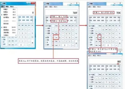 打開電腦附件中的計(jì)算器,選擇程序員,點(diǎn)選十六進(jìn)制。先輸入769F、點(diǎn)擊Xor(異域),再輸入常量7E9C,再點(diǎn)擊Xor 計(jì)算出這部機(jī)器的密碼,如圖5 所示。