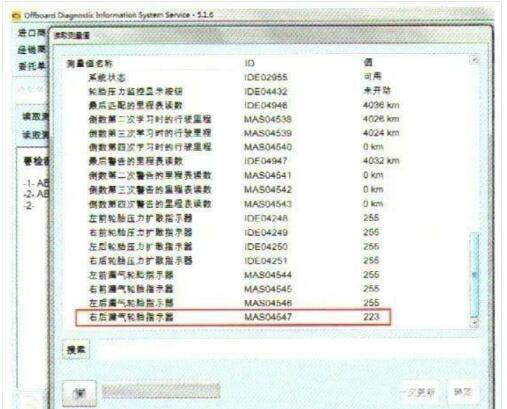 ?圖2 右后漏氣輪胎指示器數(shù)據(jù)