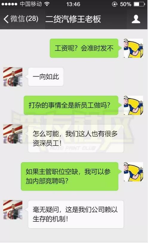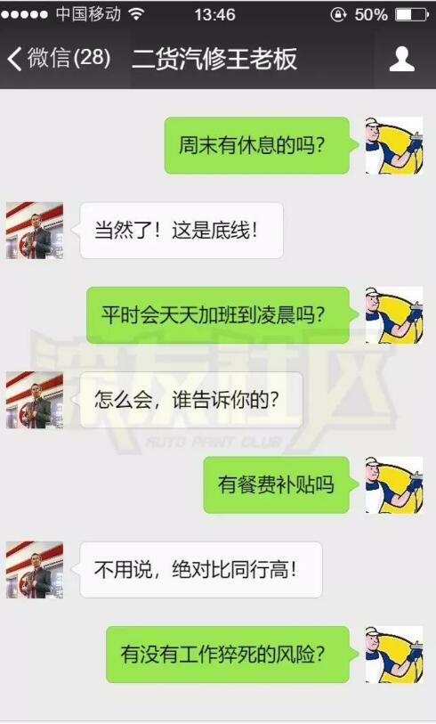 二貨汽修王老板的聊天截圖,倒過來讀一身冷汗