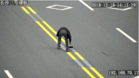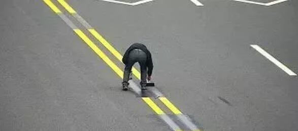 將飯店門(mén)口道路中央部分雙黃實(shí)線涂成黑色