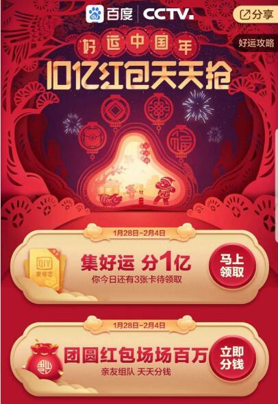 第一部分是集好運(yùn)分1億(活動時間為1月28日-2月4日):