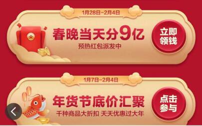 第二部分是團(tuán)圓紅包場場百萬(活動時間為1月28日-2月4日):
